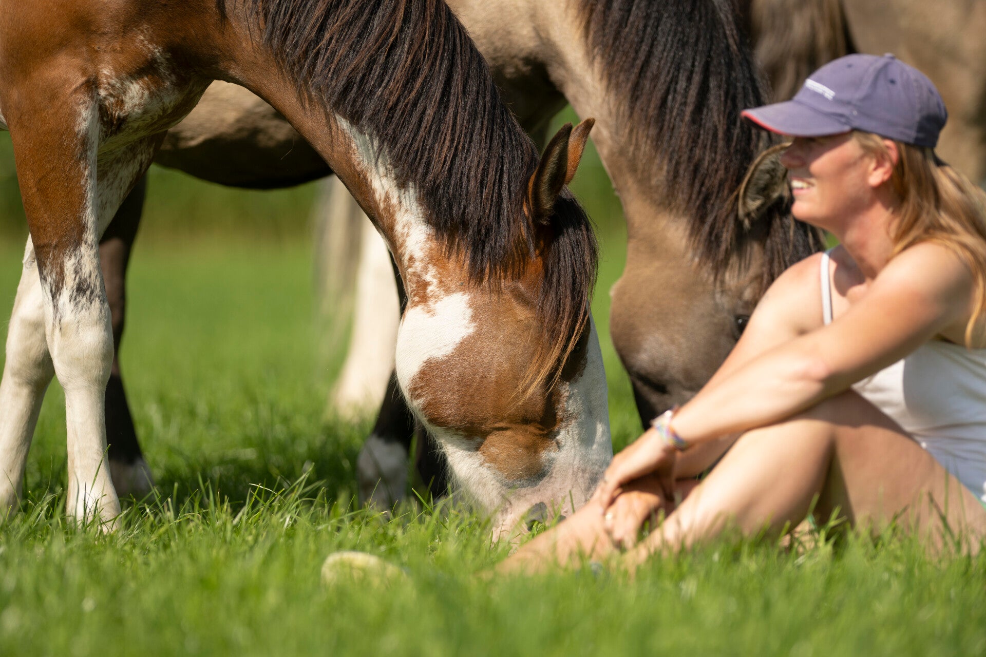 Bij ons thuis leven zowel hengsten als merries in een vriendelijke omgeving, opgegroeid in een gemengde kudde. Wij geloven in een respectvolle en paardvriendelijke manier van opvoeden en trainen. Onze dochter groeit hier middenin op en raakt steeds meer besmet met het paardenvirus. Nu ze groter wordt, leert ze spelenderwijs de juiste manier van omgaan met paarden – iets wat ik ontzettend mooi vind om door te geven.